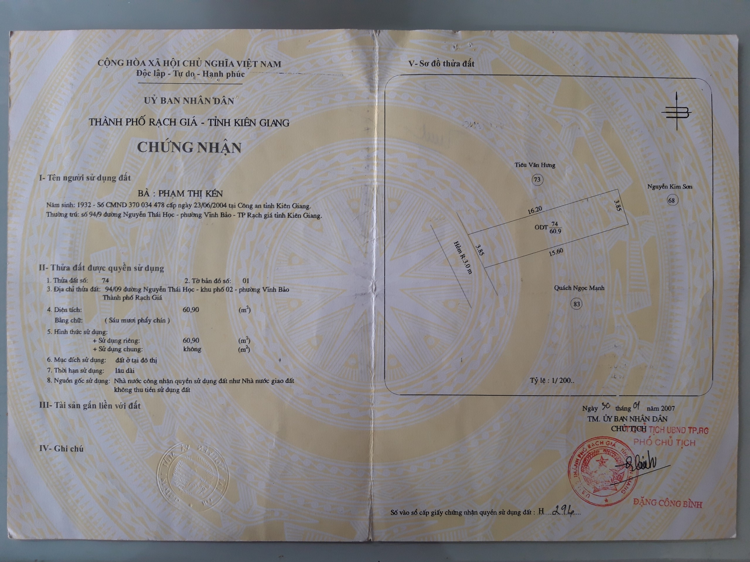 Chính chủ bán căn nhà đang ở, 94/9 nguyễn thái học, p. Vĩnh bảo, ngay trung tâm rạch giá.